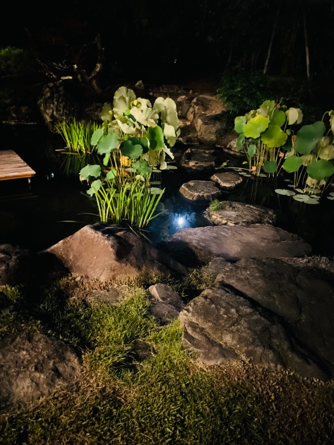 月が少しずつ上がっていくにつれ、池に映るお月様。