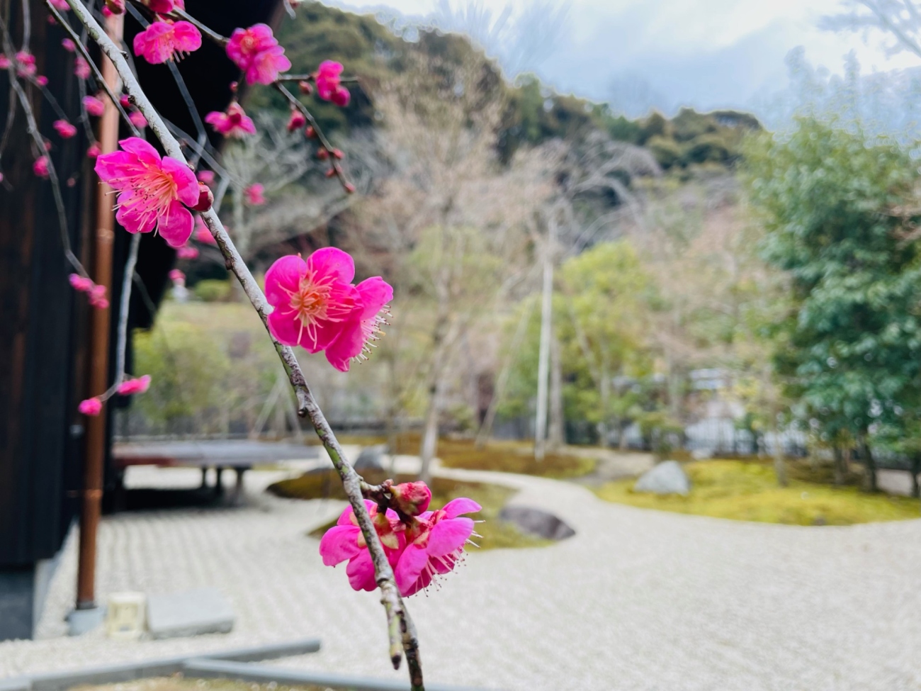 南禅寺別邸 閑雲庵の庭園の梅が咲き始めました。