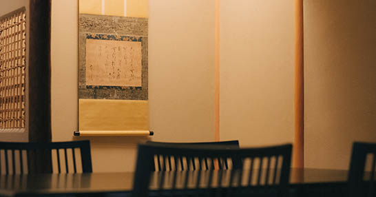 和室に設らえられた唐長の風襖に、京の伝統美を感じながら。